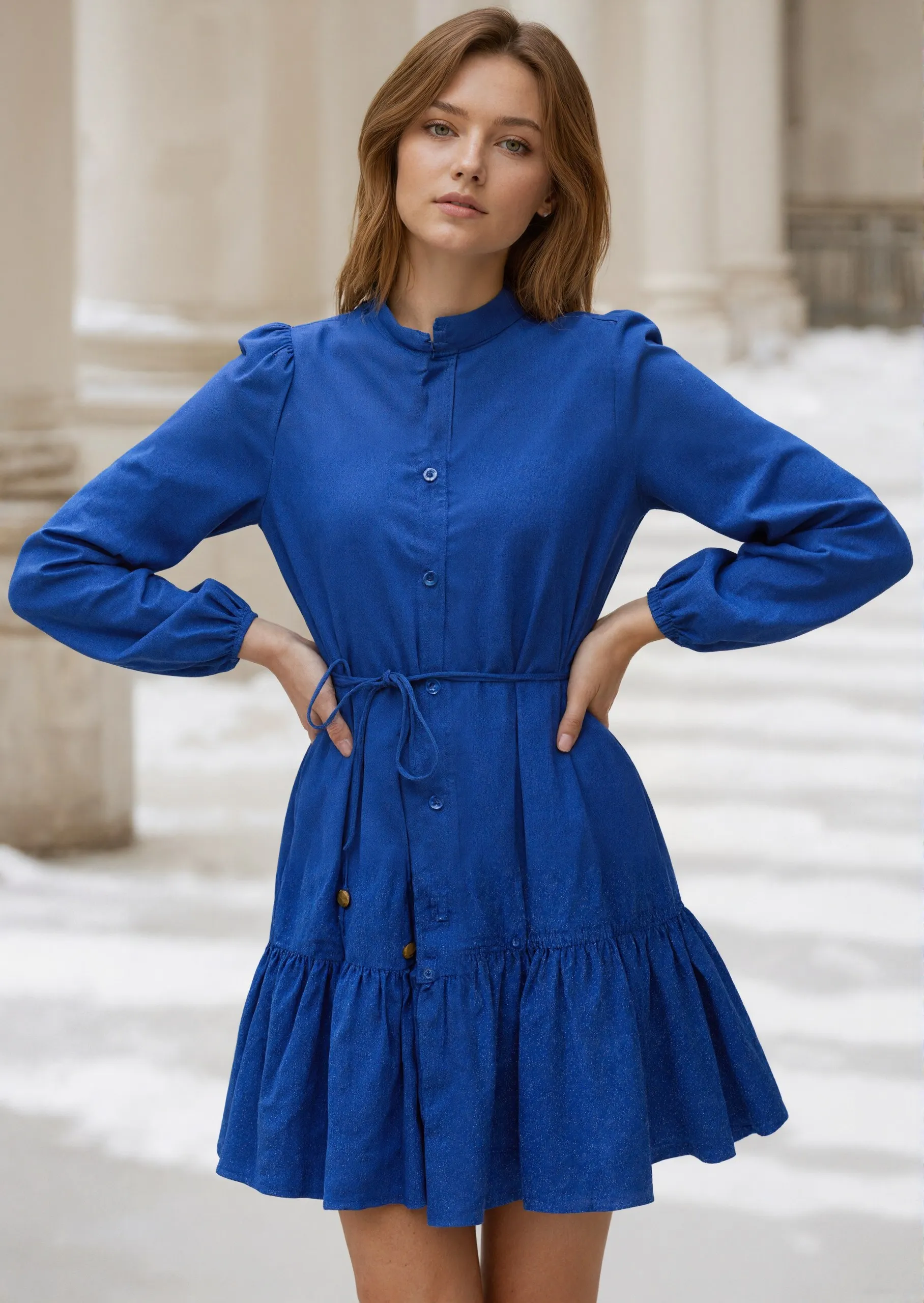 New Women's European Round Neck Button Down Shirt Dress Autumn Elegant Long Sleeve Single Breasted Causal Ruffle Mini Dress